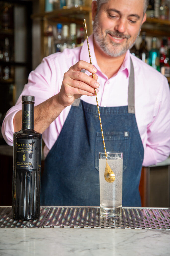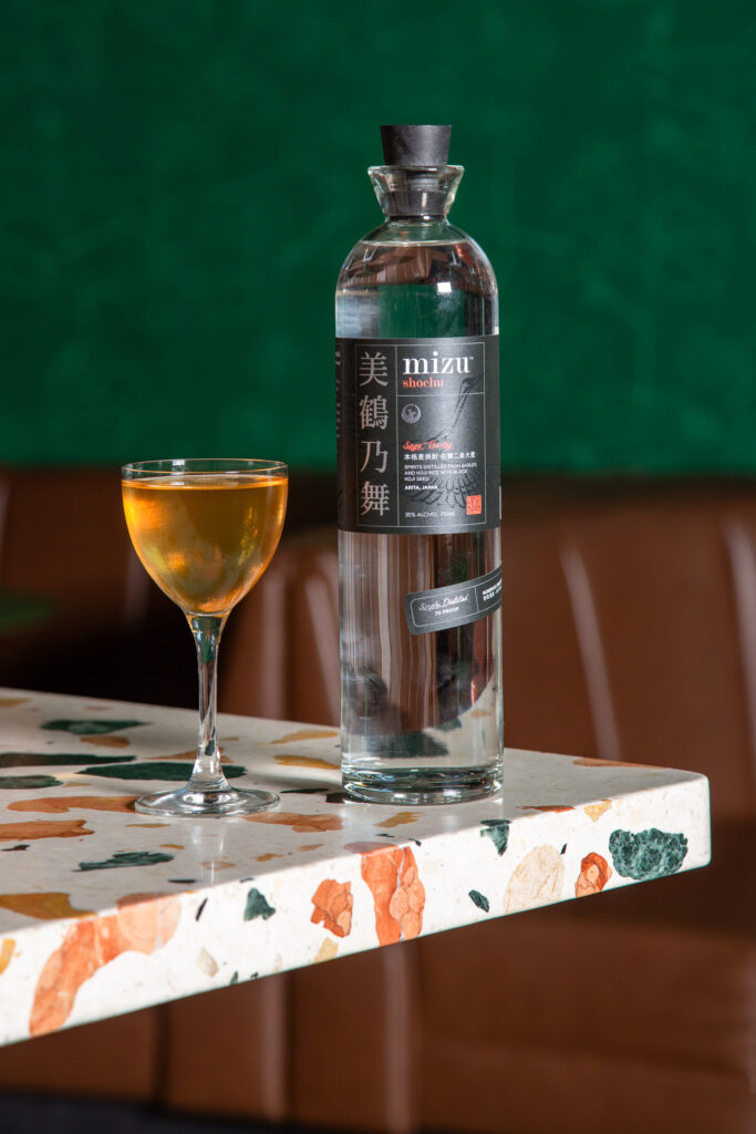 To create his cocktail for the JFOODO campaign (see recipe), the Goma Martini, Liu fat washed Mizunomai Saga shochu with sesame oil (goma means “sesame” in Japanese) and added sweetness via a touch of honey that’s counteracted by Amontillado Sherry, which adds a nutty note to complement the sesame; meanwhile, hōjicha (Japanese roasted green tea) dilutes the drink while giving it an earthier character. “I love that Martini as is, but it needs something to uplift it a bit. So we used a tangerine oil that we spritz on top, and that adds a really nice brightness to it,” Liu explained. It exemplifies the vast range of flavor profiles in which shochu can play a starring role, capturing the attention of bar patrons consistently seeking to push the limits of their palates. “We’re a very innovative cocktail bar, and [shochu is] one more thing to push out that can be very interesting for our guests,” he says.